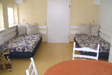 Eine Wohnung für 4 Personen befindet sich im Sourterrain. Die 2 Schlafräume sind zum Einen mit einem Doppelbett und zum Anderen mit 2 Einzelbetten ausgestattet. Im Wohnschlafraum befindet sich zusätzlich eine Ledercouchgarmitur und TV. Die Größe dieser Wohnung beläuft sich auf 54m². Badraum mit Dusche, WC, Waschtisch. Eine Küche mit Esstisch und entsprechendem Kochgeschirr ist vorhanden. Auch hier ist ein seperater Eingang vorhnden.