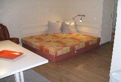 Ein Wohnung für 2 Personen befindet sich im 1. Stock mit einen seperatem Eingang und Balkon. Die Größe betägt 30 m² bestehend aus einem Schlafraum mit Doppelbett, Bad mit Wanne und Duschvorrichtung, WC und Waschbecken. Der Wohnraum ist mit einer Eckcouch, TV und einer Miniküche ausgestattet.
